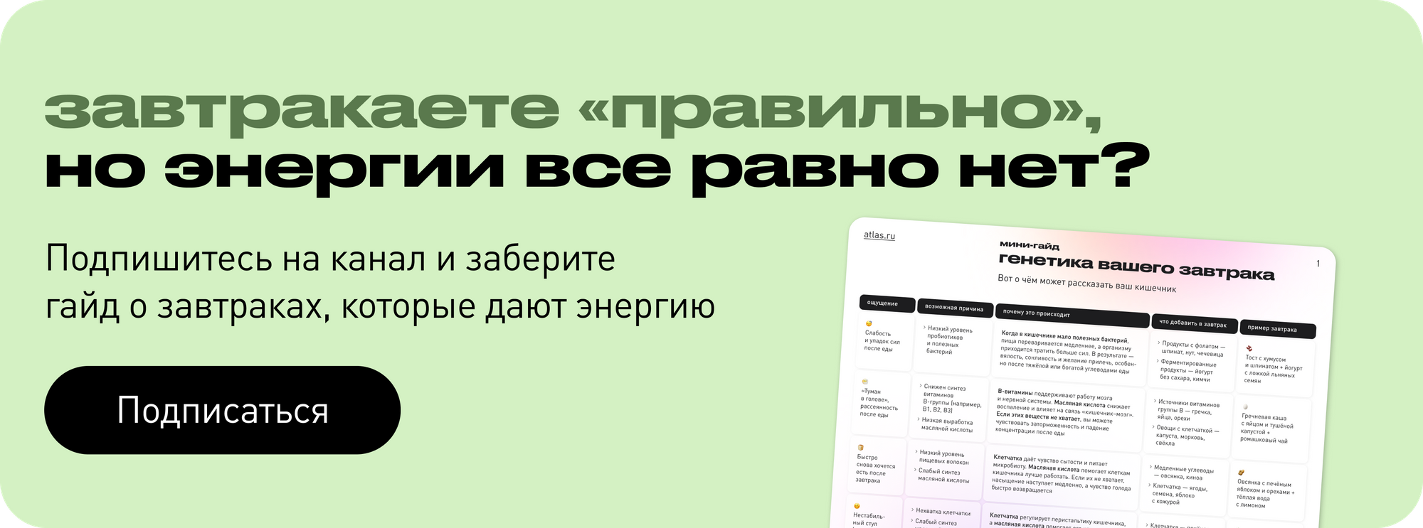 С Тестом микробиоты Атлас вы сможете оценить баланс ваших бактерий и получить индивидуальные пищевые рекомендации, которые помогут понять, как достичь комфорта в кишечнике и хорошего настроения.